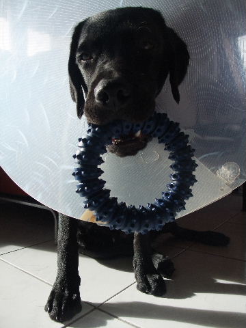 ”小朋友”在前一天才剛動了結紮手術,因此和GK去寄養家庭家接他時,