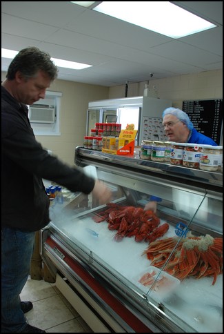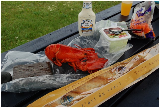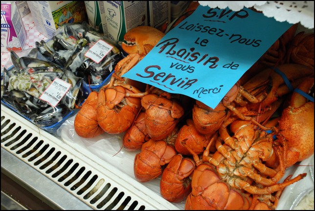 用他漸漸被喚醒的基本法文,買了這隻我們在加拿大吃的第一隻龍蝦,