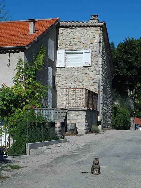這隻貓就從一戶花園走了出來,在馬路中間坐定看著我們,