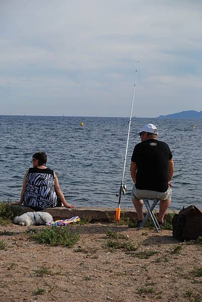 海邊陪主人釣魚的馬爾濟斯,