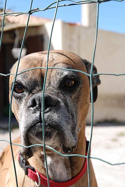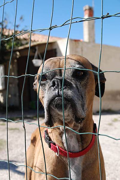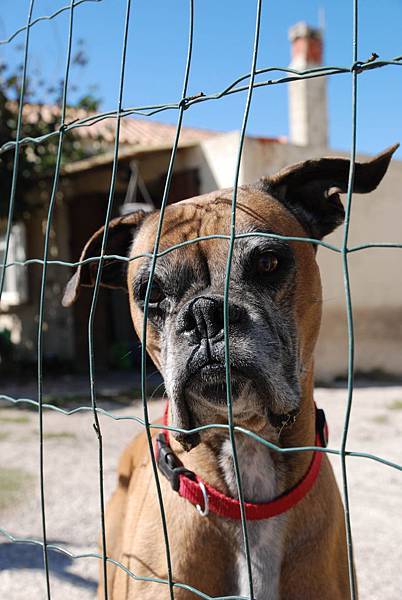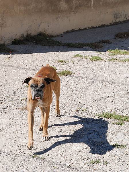 突然在某家的花園外和這隻拳師狗相遇