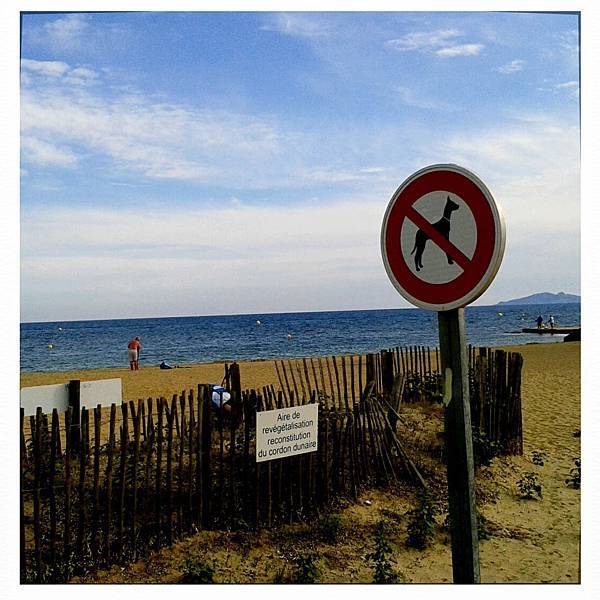 其實海邊有豎立“禁止帶狗“的標示,但.............